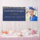 2024 Glitzer Gold und Navy Blue Abschluss Class of individuelle Name, Foto, Schule, und Jahr Graduation Party Banner. Mit diesem eleganten und modernen Namensbanner können Sie dieses Banner für den geschlossen Senioren individuell gestalten.