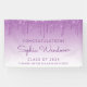 Feiern Sie ihren Abschluss von der High School oder Uni mit diesem schicken, glamourösen Banner, mit einem funkelnd lila Imitat Glitzer Tropfen Rand und lila ombre Hintergrund. Personalisieren Sie es mit ihrem Namen in lila Handschrift Skript, mit dem Klassenjahr und Schulname unten in Sans Serif Schriftart.