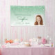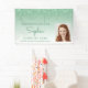 Feiern Sie ihren Abschluss von der High School oder Uni mit diesem schicken, glamourösen Foto-Banner, mit einem funkelnd grünen Imitat Glitzer Tropfen Rand und mehr Hintergrund. Ersetzen Sie das Beispielbild einfach durch ein Foto des Absolventen. Personalisieren Sie es mit ihrem Namen in grüner Handschrift, mit dem Unterrichtsjahr und Schulnamen unten in serifenlosen Schriftart.