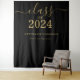 Dieses minimalistische und moderne Abschluss-Kulisse/Foto-Stand/Prop-Tapisserie bietet einen klassischen schwarzen Hintergrund mit den Worten "class of 2024" in elegantem Schriftart mit Goldschrift. Passen Sie den Namen und den Schulnamen Ihres Absolventen an. Einfach anzupassen.