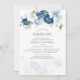 Eine moderne und elegante Klasse der Graduierungsparty 2024 mit staubblauen botanisch-blauen Rosen mit eukalyptusgrünen sukkulenten Aquarellfarben-Blume. Dieses trendige Design ist ideal, um Ihr Party anzukündigen und Ihre Gäste einzuladen. Das Design hat eine moderne Typografie auf weißem Hintergrund mit einfachem Bearbeiten von Text