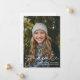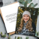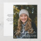 Modernes Script Overlay 2024 Graduate Foto Announcement Card mit Platz für zusätzliche Details/Informationen auf der Rückseite. Zurück ist weiß mit schwarzem Text.