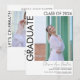 Moderne Minimalistische Zwei-Foto-Abschluss-Ankündigung & Grad-Party Einladung mit schwarzem Text auf weißem Hintergrund. Die Rückseite verfügt über individuell anpassbare Bereiche, um Party-Informationen oder zusätzliche Ankündigungsdetails hinzuzufügen.