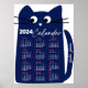 2024 Monatskalender Mitte des Jahrhunderts Blaues Katzen-Poster