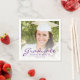 Moderne Graduiertenservietten mit einem eigenen Foto mit Texteüberlagerung. Ersetzen Sie das Beispielbild einfach durch ein Foto Ihres Absolventen. Das Wort "Graduate" erscheint in lila Schrift mit dem Namen, der Schule und dem Jahr des Abschlusses unten in Sans Serif Schriftart. Ein Überlagerungsfenster mit weißem Farbverlauf trägt dazu bei, den lila Pop zu erzeugen. Ideal für High School oder Uni-Abschluss.