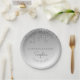 Diese schicken, eleganten Graduierungsparty-Papier-Teller mit einem funkelnd silbernen Imitat Glitzer Tropfen Rand und silbergrauen ombre Hintergrund. Personalisieren Sie sie mit dem Namen des Absolventen in Grauhandschrift, mit dem Wort "Glückwunsch" oben und das Unterjahr unten in Sans Serif Schriftart. Ideal für High School oder Uni-Abschluss.