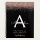 2024 Rose Gold - Rosa Schwarz Glitzer Monogramm Planer