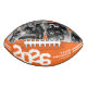 Glückwunsch Grad! Zeigen Sie Ihre Wertschätzung mit diesem personalisierten, einzigartigen Abschluss-Fußball-Geschenk. Mit einem auffälligen Jahrgang in einem Schriftart, 4 Fotos des Abschlusses, zwei weiße Streifen, ihren Namen, und die Schule oder Uni, die sie besucht. Dieser personalisierte Orangenfußball wird lange nach dem Abschluss dauern und dem Glücksgrad einen gepflegten Sake von diesem bedeutsamen Tag geben.