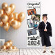 2025 Black Sketch 5 Foto Collage Graduation Party Banner