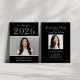 Mit dieser einfach eleganten Foto Abschluss Ankündigung Karte, die zwei Senior-Fotos Ihres schönen Abschlusses mit einem klassischen Schwarz-Silber-Grau-Farbschema bietet, können Sie Ihren High School Absolventen stilvoll bekannt geben. Die Rückseite der Karten beinhaltet eine Einladung an eine Graduiertenparty, um den Anlass zu feiern.
