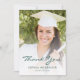 Einfache, moderne Abschluss Dankeschön-Karte mit einem individuellen vertikalen Foto. Die Wörter "Danke" erscheinen in grün lässiger Handschriftenüberlagerung mit dem Namen und Jahr des Abschlusses des Absolventen unten in serifenlosen Schriftart. Ersetzen Sie das Beispielbild einfach durch das Foto Ihres eigenen Absolventen. Ein Bildschirm mit weißem Farbverlauf trägt dazu bei, die Pop des Textes zu gewährleisten. Passen Sie den Text auf der Rückseite mit Ihrer eigenen Dankeschön-Notiz in Weiß auf einem grünen Hintergrund an.