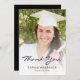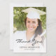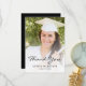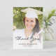 Einfache, moderne Abschluss Dankeschön-Karte mit einem individuellen vertikalen Foto. Die Worte "Danke" erscheinen in schwarz lässigen Handschriftenüberlagerungen mit dem Namen und Jahr des Abschlusses des Absolventen unten in serifenlosen Schriftart. Ersetzen Sie das Beispielbild einfach durch das Foto Ihres eigenen Absolventen. Ein Bildschirm mit weißem Farbverlauf trägt dazu bei, die Pop des Textes zu gewährleisten. Passen Sie den Text auf der Rückseite mit Ihrer Dankeschön-Notiz an.