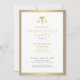 MD caduceus einfache elegante Typografie Ärzte grad Party Einladung mit einem einfachen minimalen Rahmen in Imitaten gold und weiß. Einfach mit den Feierlichkeiten und dem Foto Ihres Absolventen auf beiden Seiten personalisieren.