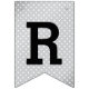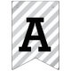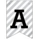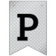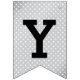 Stilvolle Graduierungsparty Banner mit Details zum Graduiertenjahr, einer Graduiertenkappe, Streifen und Polka Dot Muster. Silber, Grau, Schwarz und Weiß. Passen Sie sich das Jahr an.