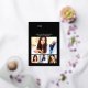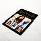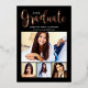 Einfach stilvolle Black Abschluss-Anzeigenkarte und Party Einladung mit "2024 Graduate" in einem modischen Real-Folie-Kalligraphie-Skript mit einer modernen Foto-Collage von vier (4) Fotos des Abschlusses. Das zweiseitige Kartendesign beinhaltet den Wortlaut der Graduierungspartei "Let's Celebrate" und Details auf der Rückseite. Klassisches Schwarz-Weiß-Design mit goldfarbenen Akzenten in Rose.