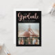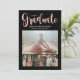 Einfach stilvolle Abschluss-Anzeigenkarte und Party Einladung bietet "Graduate" in einem trendigen Kalligrafieschrift mit einer modernen Foto-Collage von vier (4) Fotos des Abschlusses. Das zweiseitige Kartendesign beinhaltet den Wortlaut der Graduierungspartei "Let's Celebrate" und Details auf der Rückseite. Klassisches Schwarz-Weiß-Design mit goldfarbenen Rose/Rosa Farbakzenten.
