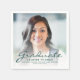 Moderne Graduiertenservietten mit einem eigenen Foto mit Texteüberlagerung. Ersetzen Sie das Beispielbild einfach durch ein Foto Ihres Absolventen. Das Wort "Graduate" erscheint in dunkelgrüner Schrift mit dem Namen, der Schule und dem Jahr des Abschlusses unten in serifenlosen Schriftart. Ein Überlagerungsfenster mit weißem Farbverlauf trägt dazu bei, den grünen Pop zu erzeugen. Ideal für High School oder Uni-Abschluss.