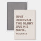 Der Magnet zeigt den Text aus dem Jahr 2025: "Gib Jehovah den Ruhm durch seinen Namen" (Psalm 96:8). Dieser inspirierend Magnet dient als tägliche Erinnerung, Jehovah in allem, was Sie tun, zu glorifizieren. Vollständig anpassbar, können Sie die Sprache und die Textfarben wählen, um es einzigartig zu machen oder um Ihre Wohngestaltung zu erfüllen.