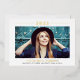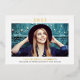 Das zweiseitige Kartendesign zeichnet sich durch eine schlichte Goldfolie aus High School Abschluss aus, die auf der Vorderseite eine Einladung zu einem Abschluss Open House Party auf der Rückseite enthält. Personalisieren Sie die Front mit einem Querformat Senior Foto und passen Sie den modernen schwarzen Text mit dem Klassenjahr, den Namen des Absolventen und der Schule, aus der sie geschlossen werden. Fügen Sie alle wichtigen Party-Details auf der Rückseite ein. Das Minimalistische Design zeichnet sich durch einen Akzent Streifen an der Vorderseite aus.