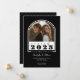 Eine moderne Schwarz-Weiß-Foto-Doppel-Abschlussfeier, die zwei Absolventen stilvoll feiern soll. Mit einem schlanken bogenförmigen Foto und "Class of 2025 in ausgeklügelter Typografie, wird diese Einladung sicherlich bemerkt werden. Personalisieren Sie die Vorlage, indem Sie Ihr Foto hochladen und den Namen und das Party der Absolventen hinzufügen. Auf der Rückseite ist ein geometrisches Muster. Alle Farben können von Ihnen bearbeitet werden! © Kimbellished, LLC