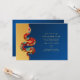 Feiern Sie die Freude am Neuen Jahr der Schlange mit dieser kühlen, modernen und eleganten Urlaubseinladung mit einer roten, goldenen und grünen Blumenschlange auf einem eleganten, zeitgenössischen blauen und goldenen Hintergrund.