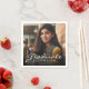 Moderne Graduiertenservietten mit einem eigenen Foto mit Texteüberlagerung. Ersetzen Sie das Beispielbild einfach durch ein Foto Ihres Absolventen. Das Wort "Graduate" erscheint in der weißen Handschrift, mit dem Namen, der Schule und dem Jahr des Abschlusses unten in Sans Serif Schriftart. Ein Überlagerungsfenster mit schwarzem Farbverlauf trägt dazu bei, den Pop mit weißem Text zu erzeugen. Ideal für High School oder Uni-Abschluss.