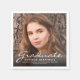 Moderne Graduiertenservietten mit einem eigenen Foto mit Texteüberlagerung. Ersetzen Sie das Beispielbild einfach durch ein Foto Ihres Absolventen. Das Wort "Graduate" erscheint in der weißen Handschrift, mit dem Namen, der Schule und dem Jahr des Abschlusses unten in Sans Serif Schriftart. Ein Überlagerungsfenster mit schwarzem Farbverlauf trägt dazu bei, den Pop mit weißem Text zu erzeugen. Ideal für High School oder Uni-Abschluss.