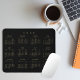 Custom, beautiful elegant faux gold script typography on black, yearly 2026 full year calendar, dust and stain resistant mousepad with non-slip back, for home and office. Makes a great custom gift for friends, family, peers, co-workers, employee, staff, for holidays, christmas, new years.