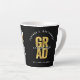 Bold Typography GRAD, Gold Faux Foil On Black, With Class Of 2026 White Handwriting Script, 8 Snapshot Photo Collage Graduation Latte Mug.