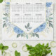 2026 Calendar Aquarell Blauer Botanischer Garten Geschirrtuch