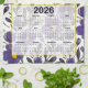 2026 Calendar Blue Violet Blume mit Blätter Geschirrtuch