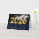 Goldballons, Bänder und Wolken auf schwarzem und blauem Hintergrund für das neue Jahr 2026