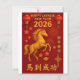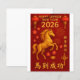 Feiern Sie stilvoll das Jahr des Pferdes mit dieser eleganten 2026 chinesischen Neujahrskarte. Mit einem kühnen galoppierenden goldenen Pferd-Set vor einer reichen, roten Kulisse, das mit traditionellen Laternen, Feuerwerken und Kirschblüten besticht, spiegelt dieses Design den Geist des Feuerpferdes wider - es symbolisiert Energie, Erfolg und Glück. Die Vorderseite der Karte zeigt "Happy Chinese New Year 2026" neben dem chinesischen Satz 馬 成 ("Success Arrives with the Horse"), während die Rückseite der Karte einen raffinierten Rot-Gold-Gruß mit den chinesischen Zeichen 新 快 到功 ("Happy New Year") anbietet. Diese Karte ist perfekt, um Familie, Freunden, Kunden und Geschäftspartnern herzliche Wünsche zu senden. Sie verbindet Tradition mit Eleganz - und macht sie zu einem wahren Vergnügen, das sie lieben. Stichwörter: Chinesische Neujahrskarte, Jahr des Pferdes 2026, Feuerpferdkarte, New Year of the Horse, Rot und Gold Lunar, Neujahrskarte 馬 功, 新 快 到, Asiatische Ferienkarte, festliche chinesische Karte, Zazzle Grußkarte