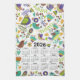 2026 Kalender Grüne und Blaue Vögel und Blume Geschirrtuch