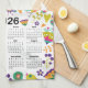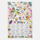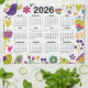 2026 Kalender Rosa und Lila Vögel und Blume Geschirrtuch