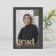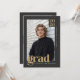 Mark a major milestone with this modern, editorial-style graduation announcement designed with a bold, refined aesthetic. Featuring a clean charcoal background and warm gold-toned typography, the front highlights one strong portrait for a confident, understated look, while the back includes a three-photo collage and space for a personalized message. This fully customizable template makes it easy to edit the class year, graduate’s name, school, and custom message, allowing you to create an announcement that feels intentional and personal without being overdone. The minimalist layout, structured typography, and strong visual hierarchy offer a distinctive alternative to traditional graduation cards and are especially well suited for male graduates. © Kimbellished, LLC
