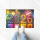 2026, farbenfrohe Neujahrsfeier mit Feuerwerk im Hintergrund.