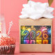 2026, bunte Silvesterfeier mit Feuerwerk im Hintergrund.