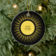 Yellow sun with black circle Total Solar Eclipse personalized with your text - name, date, and place keepsake souvenir tree ornament.