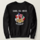 Soccer fan sweatshirt with CUSTOMIZABLE TEXT, showing flags of the 2026 host countries, USA, Canada and Mexico. Ideal souvenir sweatshirt for non-partisan soccer football fans of the Beautiful Game. Personalize the text with your group or name.