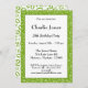 Meilenstein Nr. 20: Senden Sie individuelle Grün-Weiß-Geburtstagsfeierlichkeiten zum 20. Geburtstag von jemandem Besonderem. Das Thema der 20. Geburtstagsparty auf der Rückseite ist ein Zufallsmuster mit dem grünen Meilenstein Nummer 20, das zufällig auf einem weißen Hintergrund verteilt ist. Die Vorderseite hat Vorlagen für Who, What, Where und UAWG, die mit dem gleichen Zahlenmuster wie die Rückseite gerahmt sind, wobei die Farben umgekehrt werden. 20 Jahre alte Freunde und Familie sind besonders wichtig, also personalisieren Sie die Einladung, machen Sie es zu Ihrem eigenen. Dieses einzigartige numerische Design ist nicht nur zum Geburtstag geeignet, es eignet sich auch für jede Anlässe oder Veranstaltungen, bei denen Sie den Meilenstein Nummer zwanzig feiern. Sie können den Text an jedes Ereignis anpassen.