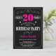 20. Geburtstag Einladung Hot Pink Black Chalkboard