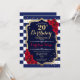Einladung zum 20. Geburtstag. Elegantes marinebrotes Design mit Imitat Glitzer. Navy und weiße Streifen mit rote Rosen. Ideal für eine elegante Geburtstagsfeier.