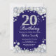 20. Geburtstag Navy Blue und Silver Diamond Einladung