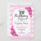 Einladung zum 20. Geburtstag. Elegantes weißes Rosa Design mit Imitat Glitzer. Silberstreifen und weiße Streifen mit rosa Rosen. Ideal für eine elegante 20. Geburtstagsfeier.