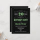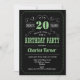 20. Geburtstagsfeier Einladung. Elegantes schwarzes, grünes, weißes Retro-Design mit Chalkboard-Muster und Skript-Schriftart. Bis 20 Jahre! Nachricht, wenn Sie weitere Anpassungen benötigen.