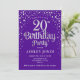 20. Geburtstagsfeier Einladung. Elegantes Design in königlichen lila und Imitate Glitzer Silber. Features stilvolle Skript-Schriftart und Konfetti. Nachricht, wenn du ein Alter brauchst.