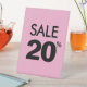 20% Off Sale Sign in pink, suitable for tabletops or countertops in retail stores, boutiques, craft booths etc.
