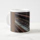 Eine antike Pedalorgel bedeckt die Vorderseite dieser Tasse.