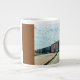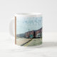 Ein Zug an einem Bahnübergang bedeckt die Vorderseite dieser Tasse.
